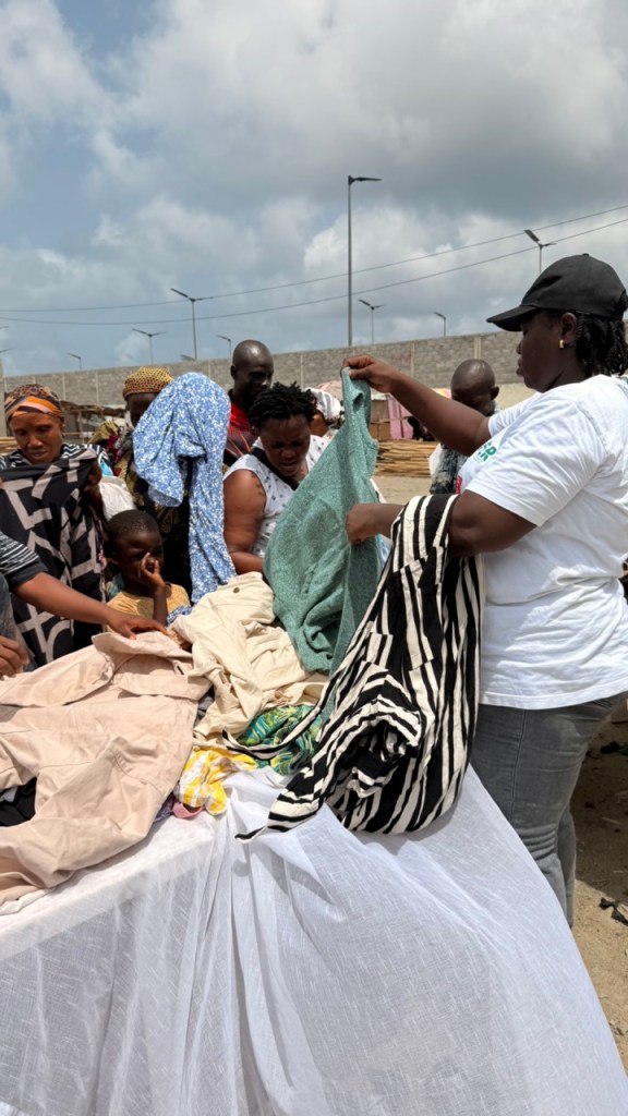 Over 130 individuals were reached during the drive. While the HerGoodwill Drive is designed primarily to serve women and children, the distribution drew broader community participation — including male community members who attended to select items on behalf of their wives, daughters and children. SDGforHer facilitated inclusive distribution while maintaining programme integrity. The turnout reflects both the scale of unmet need in this community and the growing trust SDGforHer has established along the coastal road corridor through consistent field presence.
